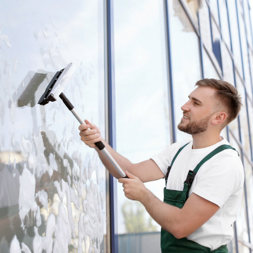 Professional window cleaning for businesses, ensuring your storefront or office always shines.